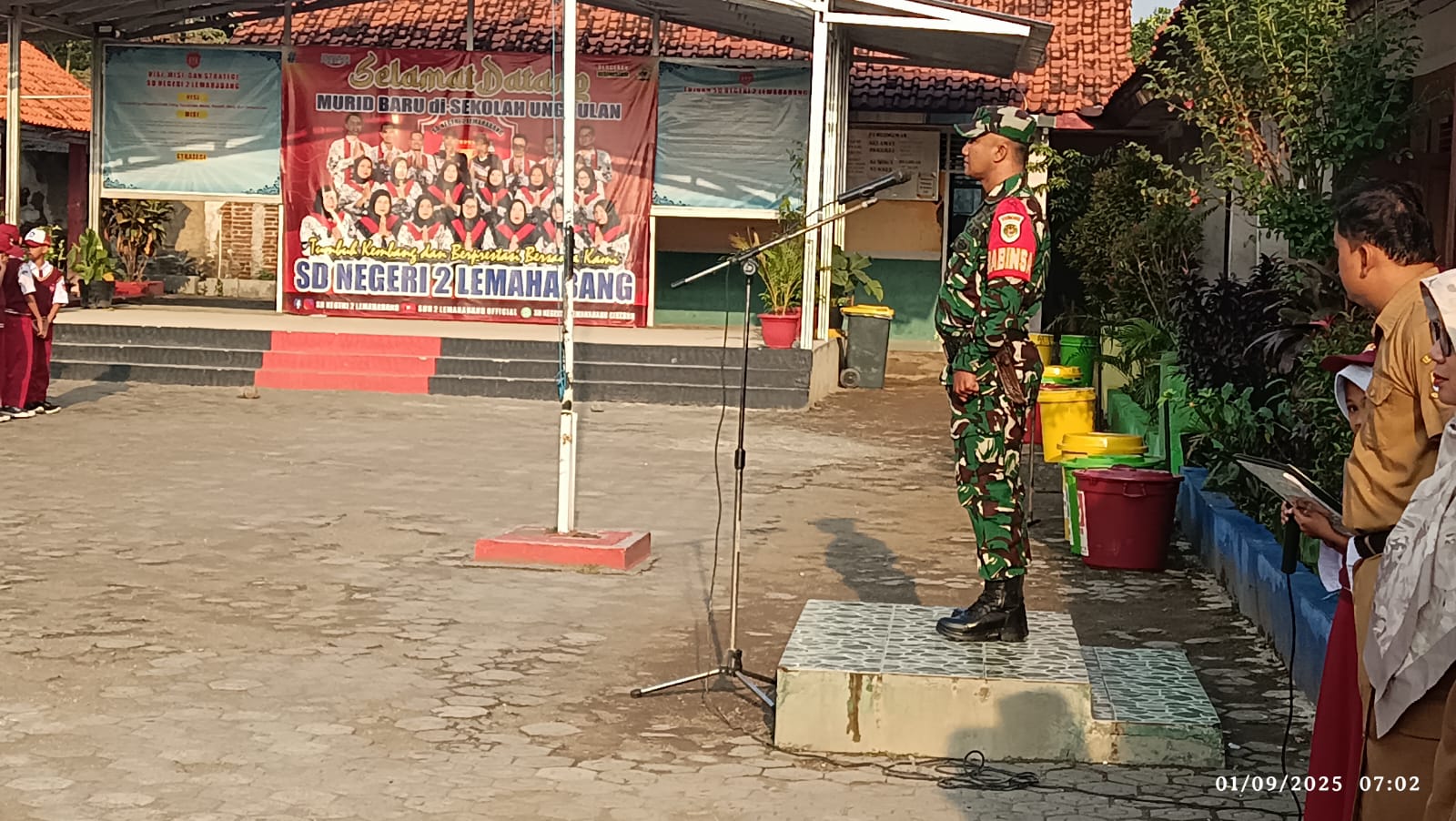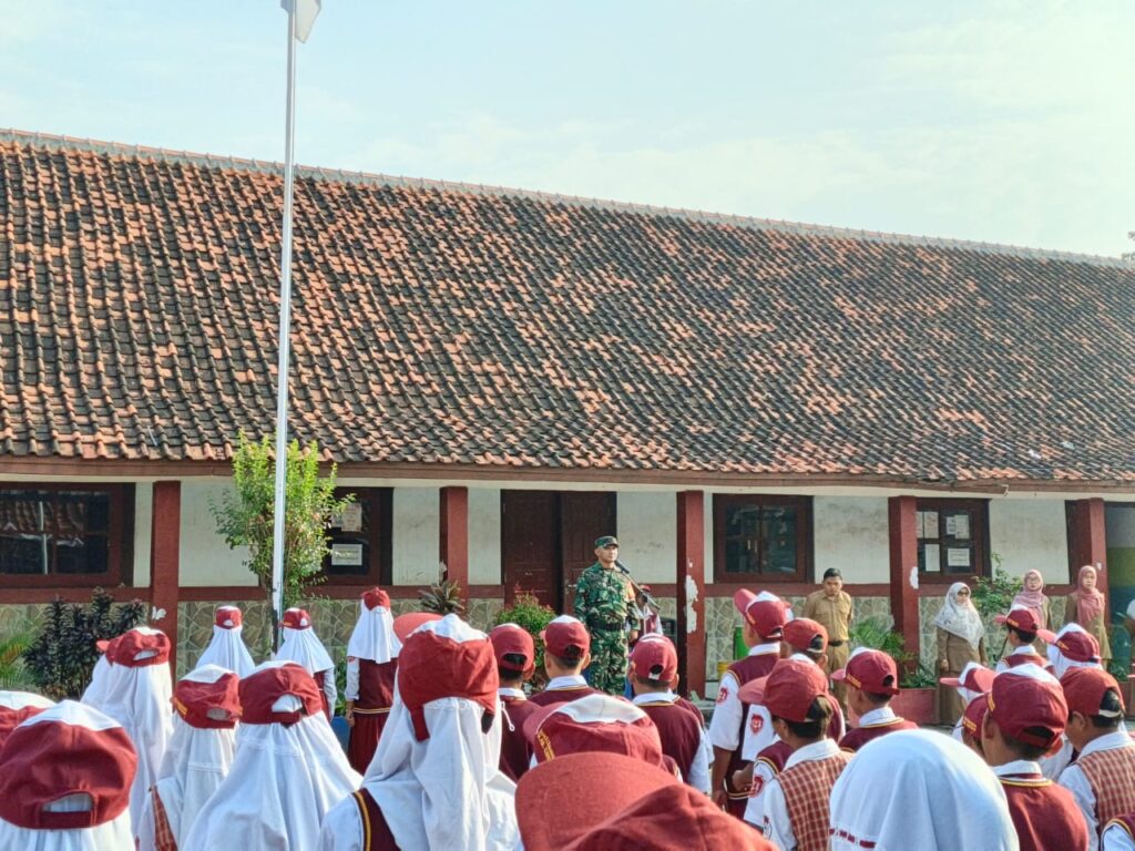 Cirebon, – Senin (1/9/2025) Sertu Wardono, Anggota Koramil 0620-10/Lemahabang Babinsa Desa Lemahabang, Kecamatan Lemahabang, Kabupaten Cirebon, menghadiri kegiatan Upacara Bendera di SDN 2 Lemahabang yang berlokasi di Dusun 3 RT 19 RW 06 Desa Lemahabang.