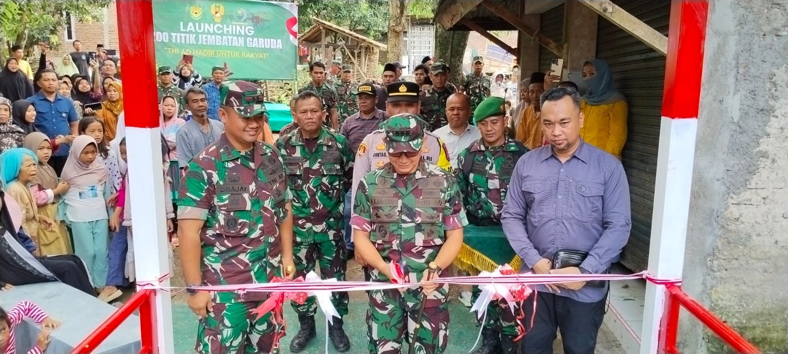 Peresmian jembatan tersebut ditandai dengan prosesi pengguntingan pita oleh Danrem 063/SGJ sebagai simbol resmi dibukanya akses jembatan bagi masyarakat. Kegiatan berlangsung khidmat dan penuh antusiasme dari warga sekitar yang telah lama menantikan keberadaan infrastruktur tersebut.