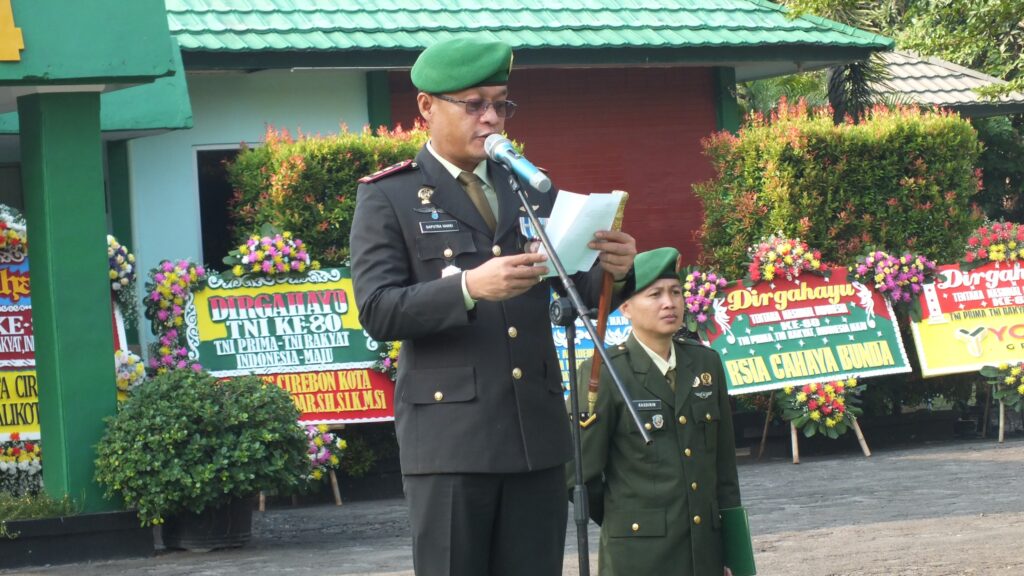 Kota Cirebon, (Minggu, 5/10/2025), – Kodim 0614/Kota Cirebon menggelar upacara peringatan Hari Ulang Tahun (HUT) ke-80 Tentara Nasional Indonesia (TNI) tahun 2025. Upacara berlangsung khidmat di Lapangan Upacara Makodim 0614/Kota Cirebon, Jalan Pemuda, Kota Cirebon.