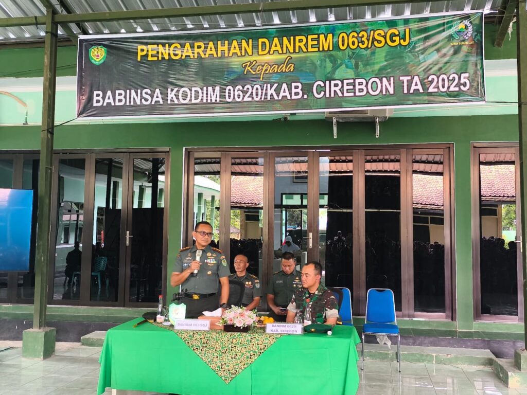 Cirebon, 25 November 2025 – Komandan Korem (Danrem) 063/Sunan Gunung Jati, Kolonel Inf Hista Soleh Harahap, S.I.P., M.I.P., M.Han, melaksanakan kunjungan kerja ke Kodim 0620/Kabupaten Cirebon pada Senin (25/11). Kehadiran Danrem didampingi Kastel dan Kasiops Rem 063/SGJ, dan disambut langsung oleh Dandim 0620/Kab. Cirebon Letkol Inf M. Yusron, S.A.P, beserta seluruh jajaran. Kegiatan berlangsung di Makodim 0620/Kab. Cirebon, Jl. Fatahillah, Sumber, Kabupaten Cirebon.