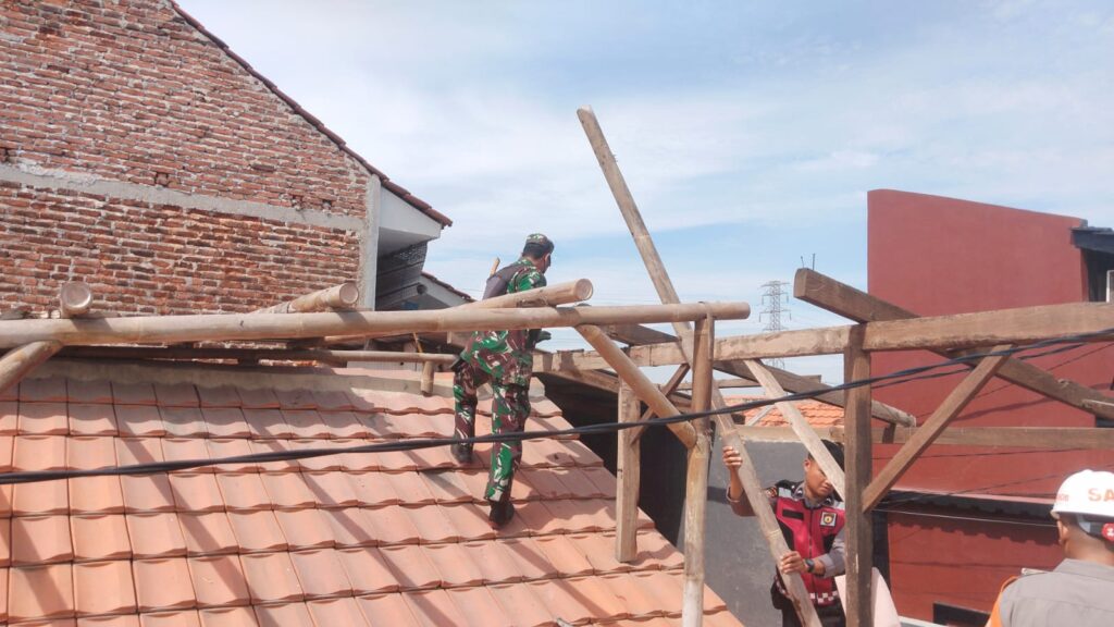 Plered, 25 Oktober 2025 — Dalam rangka membantu masyarakat yang terdampak musibah angin puting beliung yang melanda wilayah Desa Tegal Sari, Kecamatan Plered, Kabupaten Cirebon, Danramil 0620-14/Weru Kapten Inf Zaenudin S.A.P bersama anggota Koramil serta unsur gabungan TNI–POLRI dan masyarakat melaksanakan kegiatan Karya Bakti bersama, pada Sabtu (25/10/2025), mulai pukul 08.00 WIB hingga selesai, di lokasi terdampak yaitu Masjid Assya’diyah, Perumahan Pondok Mutiara RT/RW 21/07, Jalan Majapahit, Desa Tegal Sari, Kecamatan Plered, Kabupaten Cirebon.