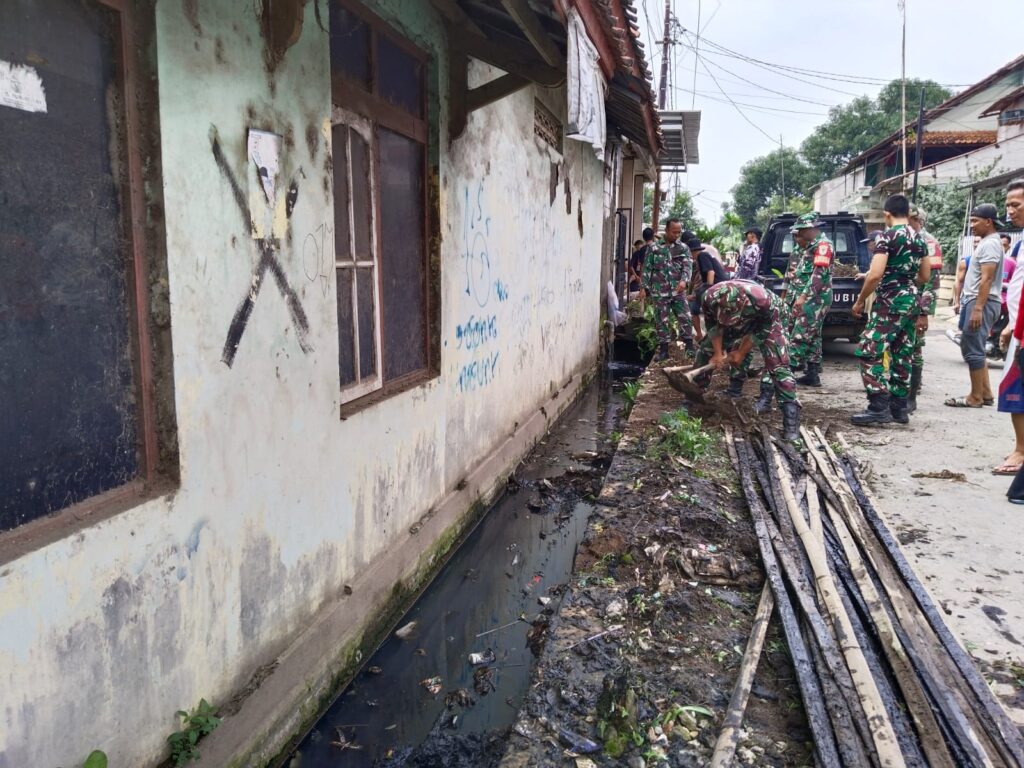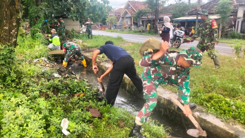 Koramil Jajaran Kodim 0620/Kab. Cirebon Gelar Karya Bakti Pembersihan Saluran Air di Tiga Wilayah
