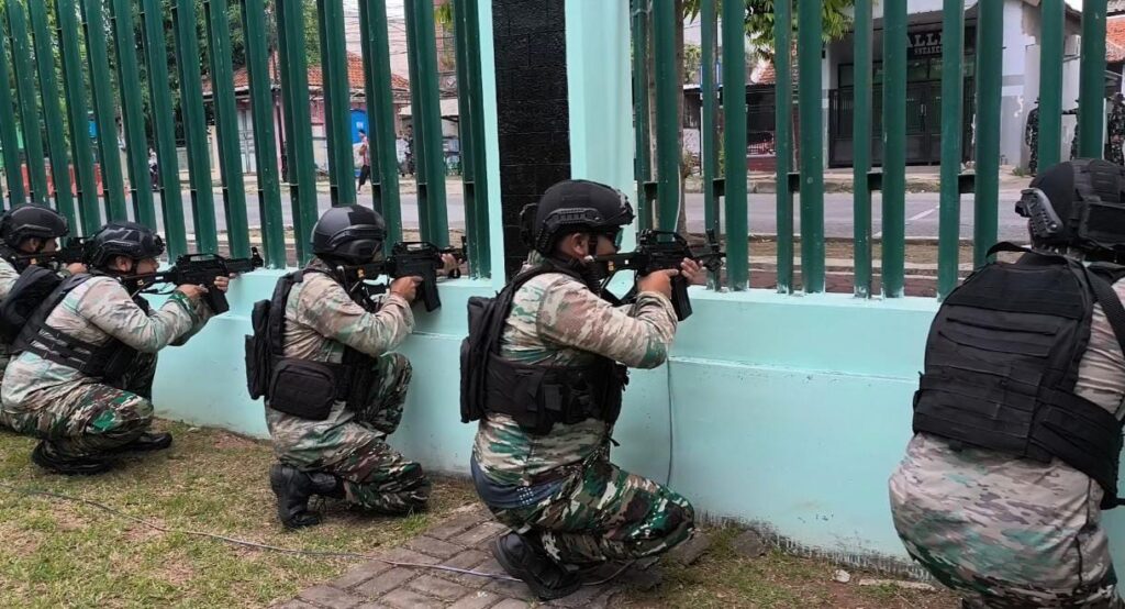 Cirebon, 16 Oktober 2025 – Komando Distrik Militer (Kodim) 0620/Kabupaten Cirebon menggelar latihan gabungan terpadu yang melibatkan personel TNI dari berbagai satuan, Kamis (16/10). Latihan ini mengusung skenario simulasi penyerangan terhadap Kodim 0620/Kab. Cirebon yang telah dikuasai oleh agresor, dan direbut kembali oleh pasukan gerilya.