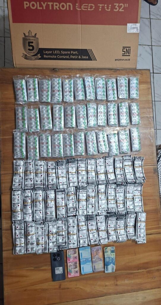 Diantaranya ​3.300 Butir Tramadol, ​3.950 Butir Trihexyphenidyl, ​Uang Tunai Rp 2.200.000 diduga hasil transaksi haram, Handphone sebagai alat komunikasi transaksi, dus televisi yangdigunakan untuk mengelabui petugas.​”Kami tidak akan memberi ruang bagi para pengedar obat keras yang merusak generasi muda di Cirebon.